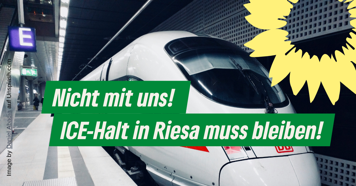 Meißen, 2. Oktober 2025. Die Deutsche Bahn AG plant laut Sächsischer Zeitung vom 30. September 2025, die ICE-Halte in Riesa ab Dezember 2025 drastisch zu reduzieren. Vorgesehen ist, dass künftig lediglich zwei Züge am Morgen in Richtung Leipzig sowie drei am Abend in Richtung Dresden halten. Der Kreisverband Meißen von Bündnis 90/Die Grünen lehnt diese Pläne entschieden ab.